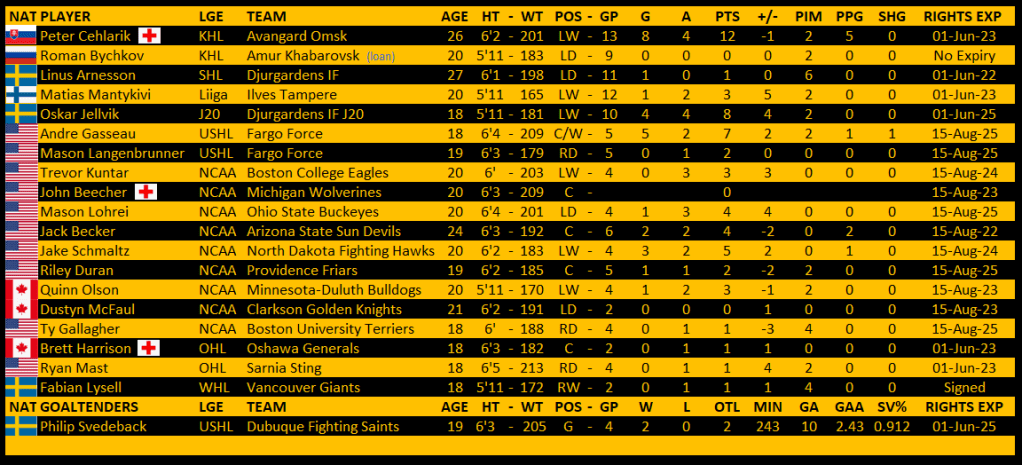 Peter Cehlarik was in the midst of a two-game pointless streak and has missed the last three games with an injury. Roman Bychkov is pointless in 9 games and has been a healthy scratch in his last three games. With a goal, Linus Arnesson ended his pointless streak at 10 games. Roman Bychkov had his pointless streak reach 9 games and was a healthy scratch last week in the KHL.