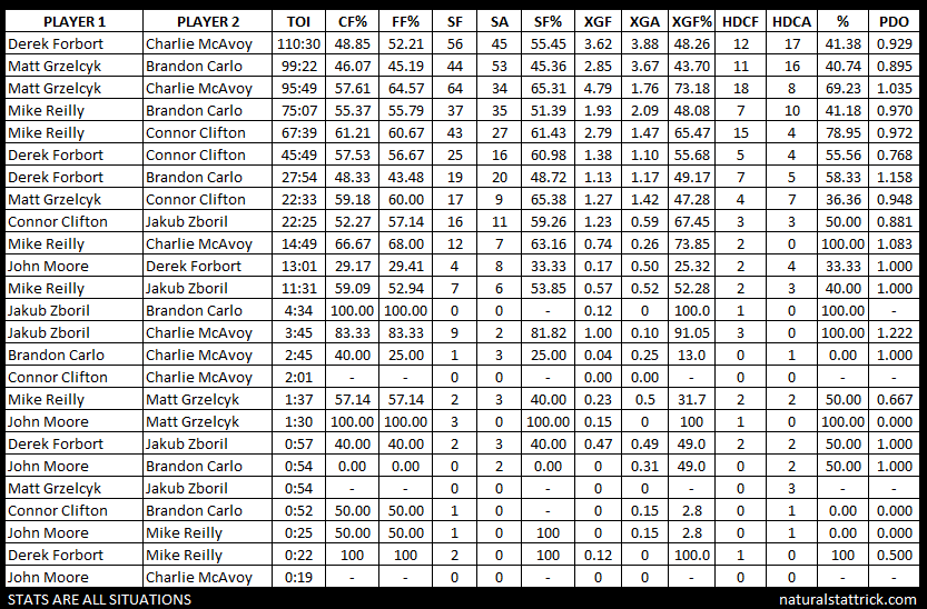 We all know what the Grzelcyk – McAvoy pair is capable of doing. But putting all your eggs in one basket is weakening the other two pairs. However, the Reilly – Clifton pair has fared well in almost metric. The Grzelcyk – Clifton pair has done okay, but not as good.