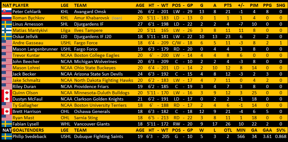 It was another tough outing for Philip Svedeback in his lone start last week giving up 6 goals on 19 shots in a 6-3 loss against Chicago. After going 5-0-2 in his first 7 games, he has lost three in a row and has given up 16 goals on 57 shots for a save-percentage of .719. Let’s hope for a bounce back this week as Dubuque have a back-to-back-to-back with Youngstown. He needs to get his confidence back.