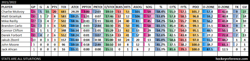 As for Grzelcyk, he had a career year a season ago with 20 points in 37 games or .54 points per game. But this season, he is down to .23 points per game, or less than half of what he was producing a season ago. However, part of that can be attributed to coming off the first powerplay unit.