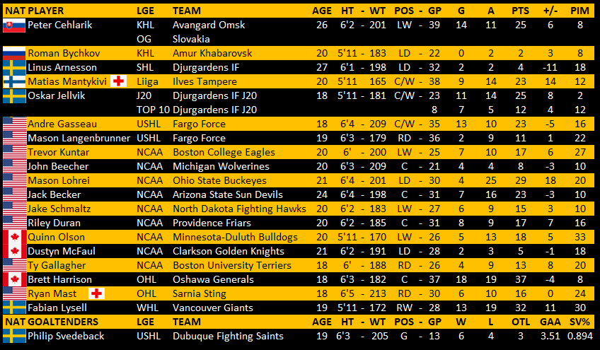 Note: Cehlarik’s schedule is with Slovakia at the Olympic Games.