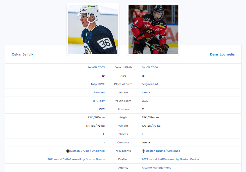Thanks to the fine work over at Elite Prospects, using their comparable tool makes it easy to compare players – but it does require a premium membership and is worth every penny. Before we take a look at how their “Age Seasons” compare to each other, lets first look at the players.