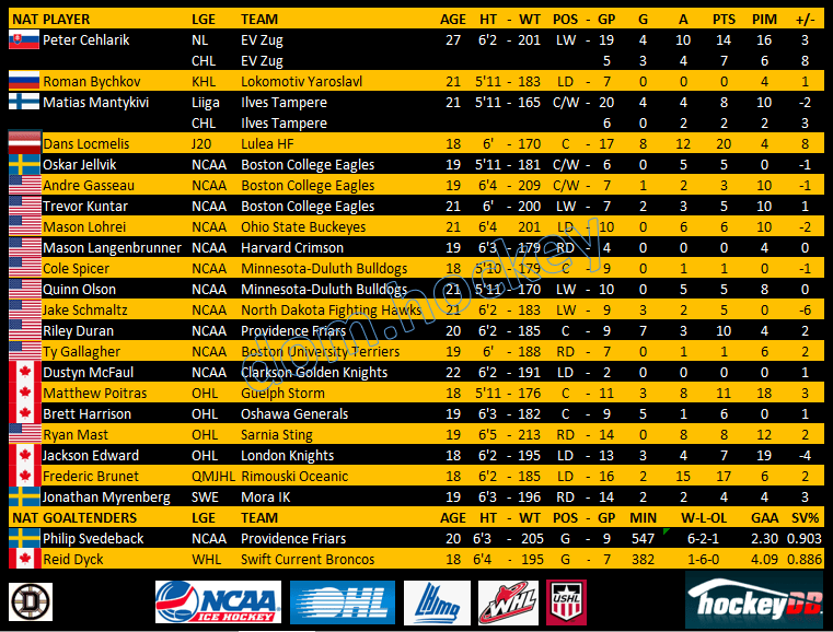 Oskar Jellvik Is a sophomore who has yet to score his first NCAA goal, but he does have helpers in 5 of his 6 games on the season and is tied for second in scoring for Boston College with fellow prospect Trevor Kuntar who has 2 goals and 3 assists. If you get to watch Providence play, I hope you can see why I had such high hopes for Jellvik last season. Andre Gasseau completes the Bruins trio in Providence. Gasseau scored his first career goal Saturday and also has two helpers on the season.