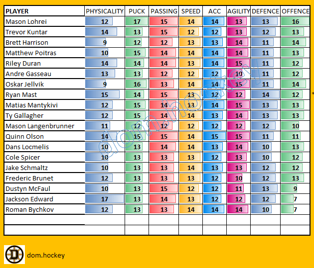 It is also important to stress that it is based on last season. Things change like physicality for instance. A player may become more physical as he matures and adds strength and becomes more comfortable. Or a player moving onto different levels where he may get better coaching for skating as an example. It’s a way I map progression and if seen through the same set of eyes, I have faith in it.