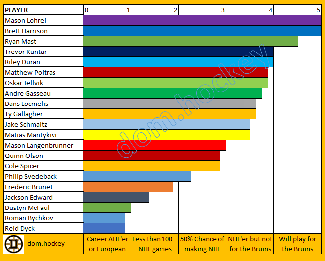 You may remember the following chart from last season or the start of this season. For new followers, this chart is where I think the future lies for each player in terms of NHL possibilities. Yes, it is an opinion but it is based on things such as current level of play, how they’ve projected, contract status, who is ahead of them on the depth chart and their trade value around the league.