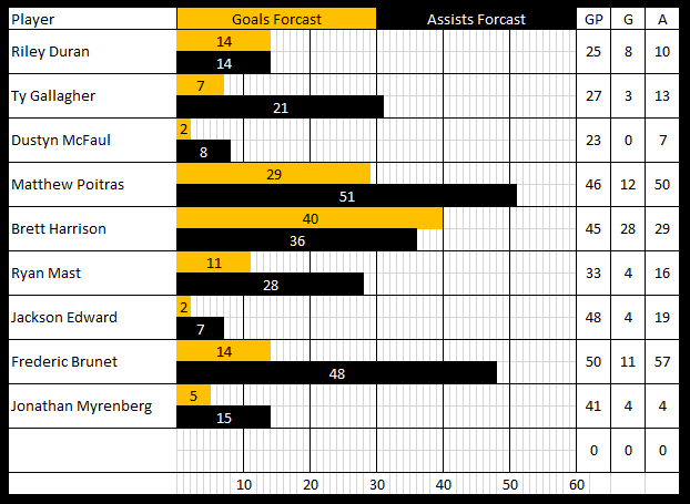 Posted 22 goals and 16 assists in 60 games in the USHL last season and made the jump to the NCAA. Gasseau has pretty much reached his expected output already so, I was either too kind to him or he has been better than anyone could have hoped to this point.