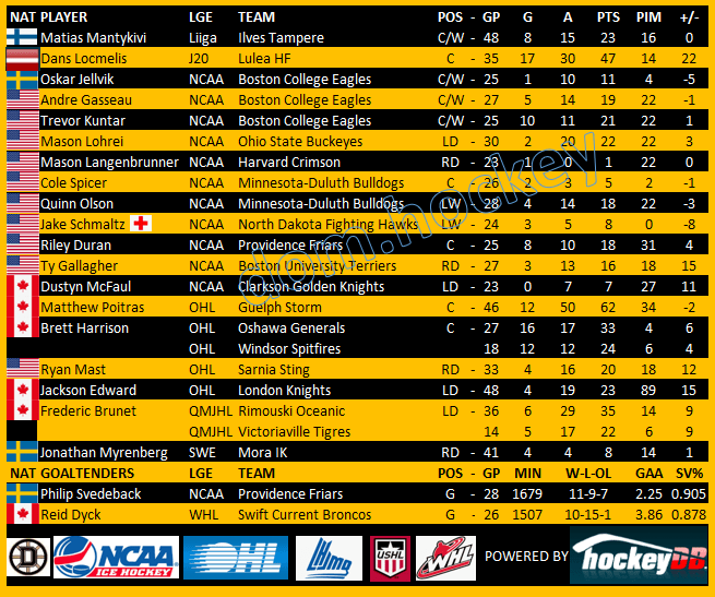 Posted 18 goals and 16 assists in 44 games in the J20 Nationell a season ago and a marked jump was expected this season. It looks as though not only will Locmelis achieve those but surpass them. His assist totals were expected to take a major jump because of the quality of linemates he has.