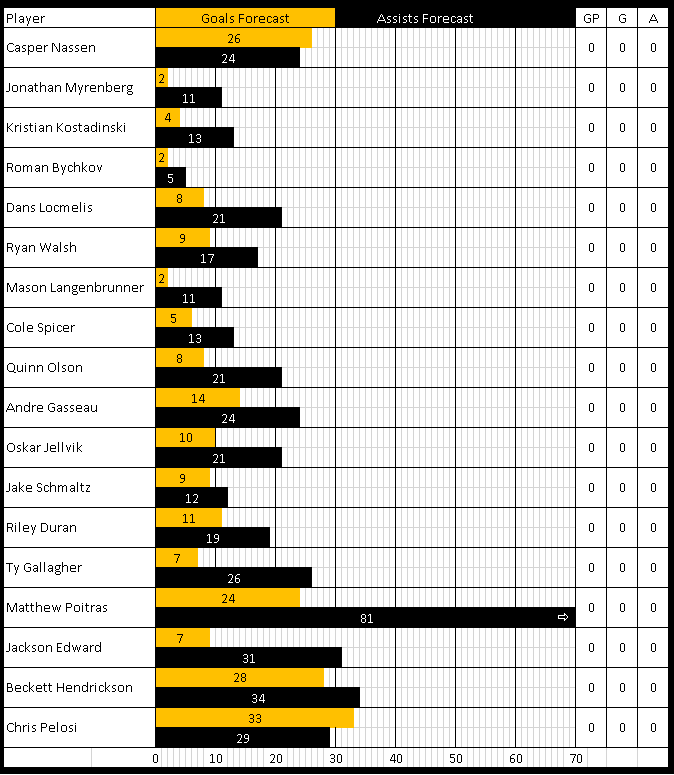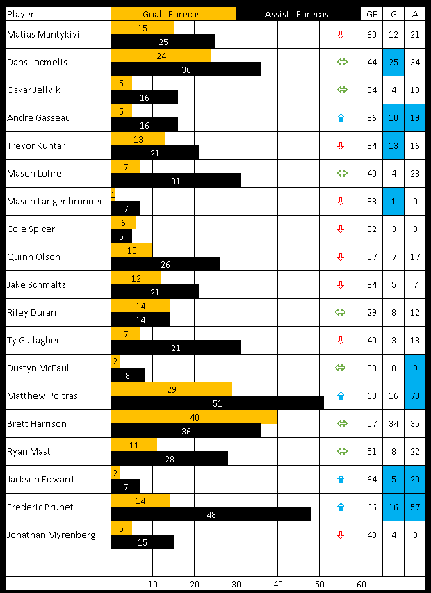 There were some big hits like Andre Gasseau and Jackson Edward. There were some big misses like Schmaltz and Olson. And there were those that came in right on target such as Dans Locmelis. I did fail to take into consideration how much it would affect Lohrei coming back from surgery and that was a miss by me.