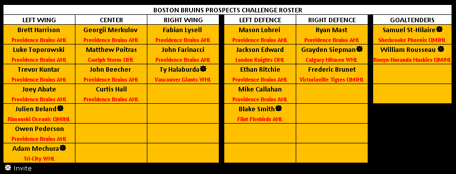 3 thoughts on “Bruins Rookie Camp and Prospect Challenge Roster”