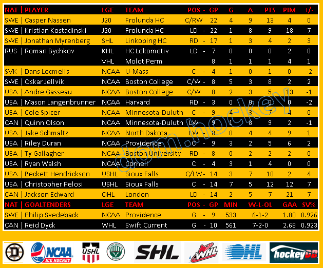 In the NCAA, Boston College defeated Mass-Lowell 3-2. Oskar Jellvik set up the 2-0 goal on a beautiful pass across the slot to keep his point streak alive at 6 games on 5 goals and s assists. I feel I can say Jellvik’s transition to North American hockey is complete and some good times are ahead for him. After a hot start to the season, Andre Gasseau did not register a point in this one and has just one helper in his last 4 games. I have no doubts Gasseau can work through this mini-slump and get back to producing.