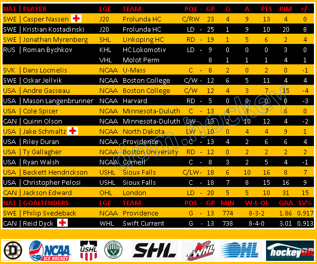 In NCAA action Dans Locmelis and U-Mass defeated Providence and Riley Duran and Philip Svedeback 3-2. It wasn’t a great game if you’re a Bruins fan. Locmelis was moved up in the lineup at times but it didn’t show up on the score sheet. He did finish with 2 shots on goal. Duran was ineffective offensively in the loss and had zeroes across the board. Svedeback lost for the first time in 10 games stopping 24 of 27 shots. You couldn’t fault him on any of the goals against.