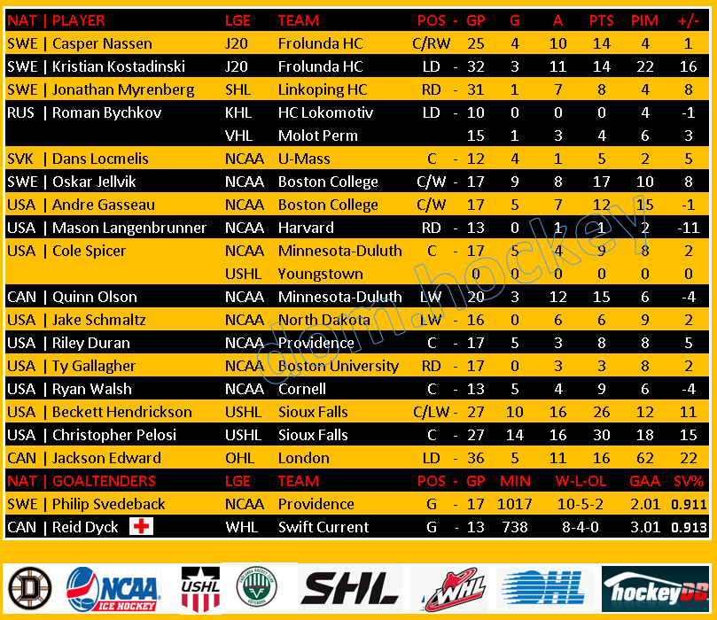 On Friday in NCAA action, U-Mass and Connecticut officially battled to a 3-3 tie although Connecticut won the shootout. Dans Locmelis, who is returning from the World Junior Championships in Sweden did not play as he gets reacclimated to the time zone.