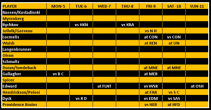 Here’s a look at the Providence Bruins leaders. You will notice a column called “value” This is provided by our friends at Benchrates. Created by a retired hockey player, Benchrates has created and algorithm that computes values in real time. The value you see is the cap hit value they’ve earned this season to date. Give them a look and check out their site.