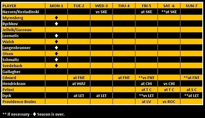 I was informed that one member of the Bruins would be attending the Vancouver Giants and Everett Silvertips series-opening game last Friday. It’s only surprising because the Swift Current Broncos began their best-of-seven series on the same night. My best guess is they are keeping tabs on Ty Halaburda who attended the Bruins Development Camp last summer. Halaburda had 21 goals and 45 assists in 68 games for the Giants this season. He will be a draft re-entry in June and the Bruins are probably doing some due diligence. Vancouver won the game 6-4 with Halaburda notching a goal and assist with 5 SOG.
