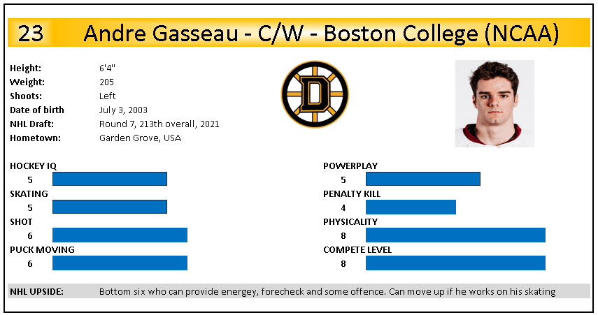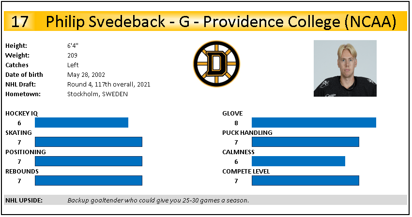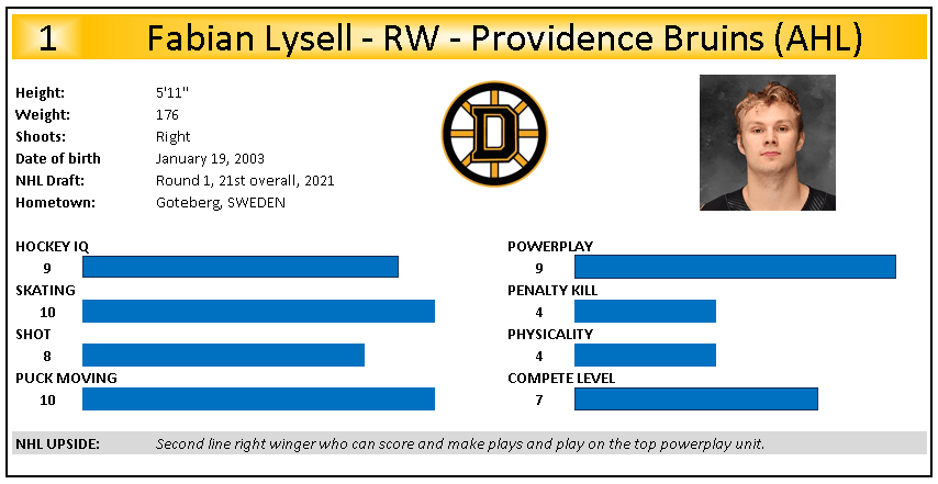 Interesting assessment of a light prospect system in terms of quality, but I actually like the depth of AHL / fringe NHL possibilities. Curious to see if Boston gives Lysell a shot.