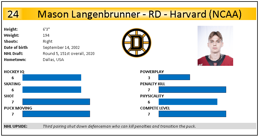 Today, I will assess these prospects objectively. To qualify, a prospect must be under Boston’s control, either through drafting, trade acquisition, or free agency signing. Players under AHL contracts are excluded since they are not under Boston’s control unless they were previously drafted by the team. Prospects must be under 25 years old as of September 30, 2024. This criterion eliminates players like Brandon Bussi, Michael DiPietro, Michael Callahan, and others. Players that finished the 2023-2024 season on the NHL roster are also not listed. That includes Mason Lohrei, Matthew Poitras and Johnny Beecher.