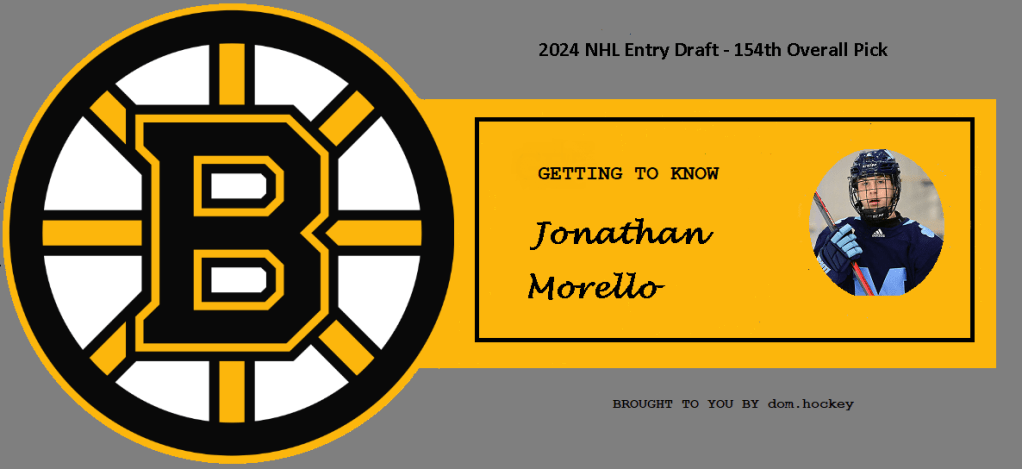With the 154th pick the Bruins selected Jonathan Morello from the Ontario Junior Hockey League. For me, he was a top-100 player in the draft and the third best skater.