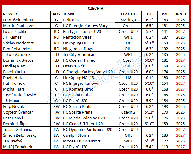 | Filip Novák | Czechia | Right Wing | HC Sparta (Czech U20) |
