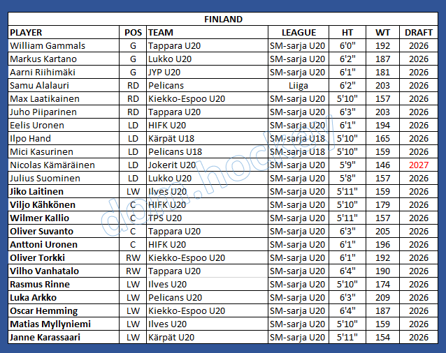 | Oscar Hemming | Finland | Center/Left Wing | Kiekko-Espoo (SM-sarja U20) |