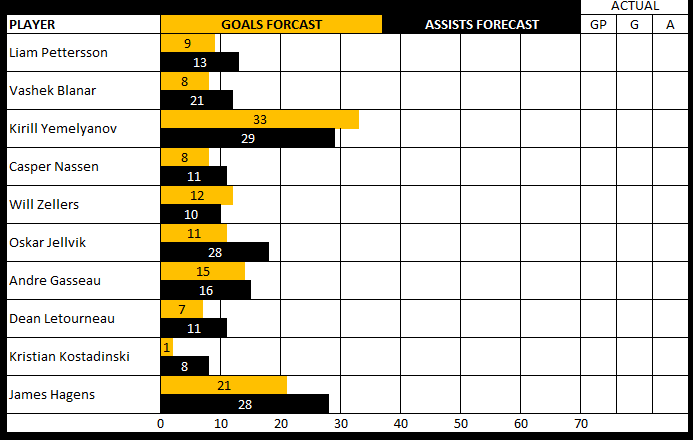 | PROJECTED | Loko Yaroslavl | MHL | 52 | 33 | 29 | 62 |
