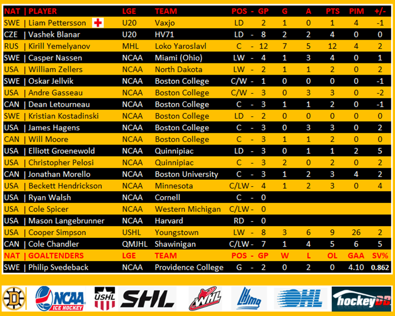Moore once again filled in for Jellvik on the second-line left wing, finishing with a clean stat line in 15:37 of ice time. Gasseau was held without a point but registered one shot on goal and went 16-for-23 on faceoffs while logging 22:48 in ice time. Kostadinski led all Bruins prospects with two shots on goal and showed improved poise, though he saw limited action with just 8:19 of ice time.