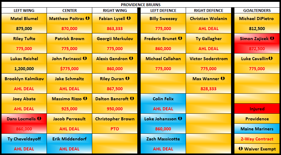 Andre Gasseau Beckett Hendrickson Brandon Bussi Brandon Carlo Brett Harrison Casper Nassen Charlie McAvoy Christopher Pelosi Cole Spicer Dans Locmelis Dean Letourneau Derek Forbort Don Sweeney Elliott Groenewold Fabian Lysell Frederic Brunet Georgii Merkulov Jackson Edward Jake DeBrusk Jake Schmaltz Jeremy Swayman John Beecher John Farinacci Jonathan Morello Jonathan Myrenberg Kristian Kostadinski Loke Johansson Mason Langenbrunner Mason Lohrei Matias Mantykivi Matt Grzelcyk Matthew Poitras Michael DiPietro Oskar Jellvik Philip Svedeback Quinn Olson Reid Dyck Riley Duran Roman Bychkov Ryan Mast Ryan Walsh Trevor Kuntar Ty Gallagher Vashek Blanar Will Zellers